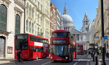 Ünlü kırmızı çift katlı otobüsler, şehrin sembollerindendir. Oyster Card ile kullanılabilir.
