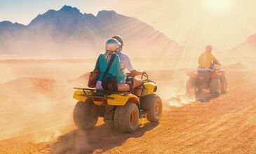 Macera ve adrenalin tutkunları için benzersiz bir deneyim. Çölü karış karış bilen profesyonel ekip liderlerimizi takip ederek çölün uçsuz bucaksız coğrafyasında hayatınız boyunca unutamayacağınız bir gezi sizleri bekliyor. Çölde bir Bedevi kampı ziyareti ve kampta naneli çay ikramı fiyata dahildir. Turumuzun ardında Günün 2 etabı olarak ise akşam Yıldızlar altında Bedevi Gecesini geçireceğimiz Bedevi kamp alanına yine atv ve Buggy araçlarımızla ulaşıyoruz. Sinai çölünde Deve yolculuğu ve Bedevi çayı, Geleneksel Bedevi akşam yemeği, Teleskop ile Yıldızlara ve gezegene bakma imkanı ile kaçırılmayak bir gün sizleri bekliyor. Bedevi gecesi bitiminde yine ATV ve BUGGY araçlarımızla Toplanma alanına dönerek otellere transferlerimiz otobüsler ile gerçekleşecektir.